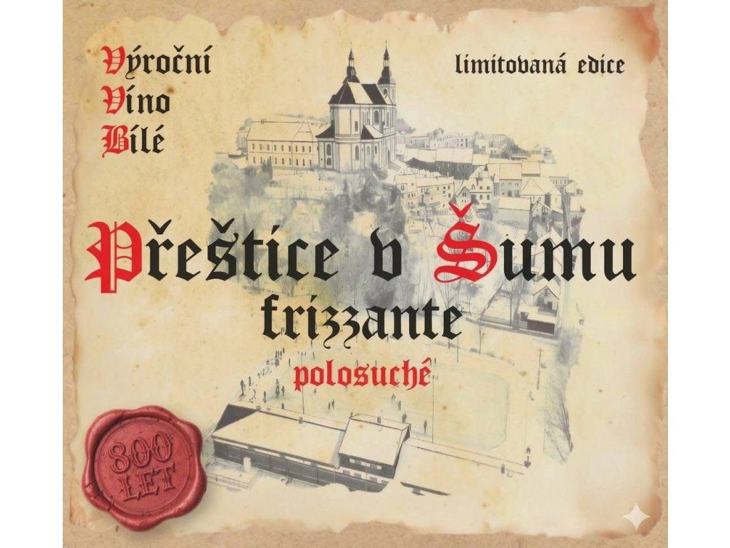 „Přeštice v šumu“ je výjimečné výroční víno připravené k oslavám 800 let města. Spojuje jemné perlení, svěží chuť a radost ze společných okamžiků.