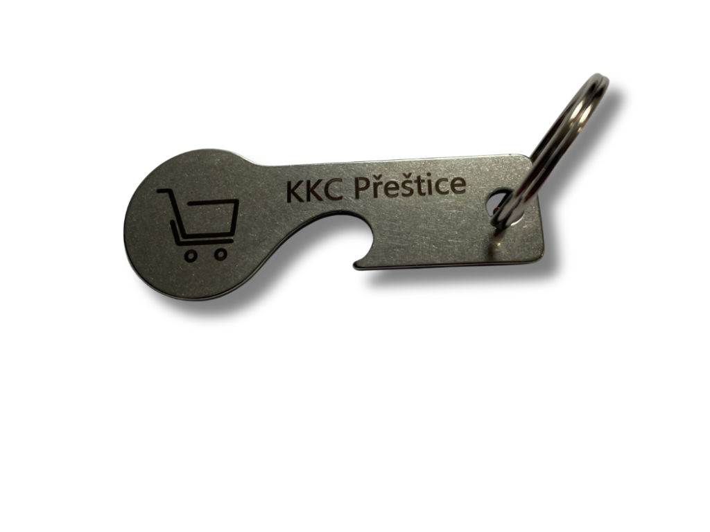 Vše, co potřebuješ, stále po ruce. Tento multifunkční přívěsek od KKC Přeštice kombinuje žeton do košíku a otvírák v jednom.